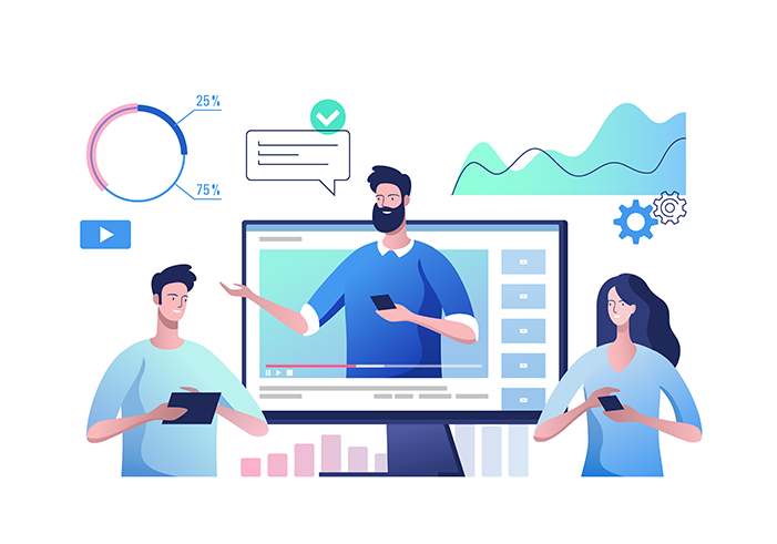 La herramienta de creación de videos en línea de e-Thinks le brinda la facilidad de crear videos para su negocio en minutos sin experiencia previa. También puede agregar personalización e interactividad con nuestras herramientas fáciles de usar.